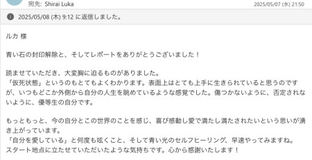 「青い石の封印解除でレムリア時代の力と意識を覚醒」を受けてくださったN.N様に対して行ったセッションの詳しい内容と感想を、許可をいただいたうえで掲載します。