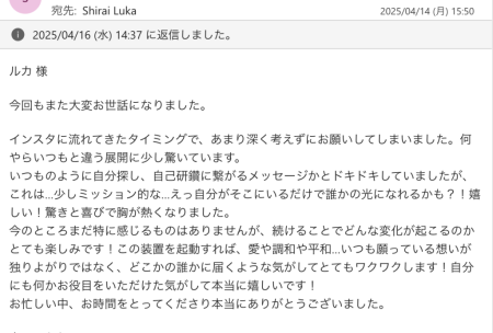この装置を起動すれば、愛や調和や平和…いつも願っている想いが独りよがりではなく、どこかの誰かに届くような気がしてとてもワクワクします!