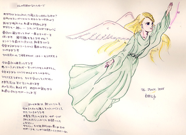 ☆Tさんの天使からのメッセージ ←前のイラスト 次のイラスト→ ![]() 【クリックしてイラストイメージを拡大】 ---Tさんへのチャネリングメッセージ--- あなたはどこに向かって飛んで行きたいですか? 目的地をしっかりと心に刻んでいきましょう 新たなる場所へと私たちは移動します あなたも一緒に・・・ステップを登りましょう! 最初に飛び立つときが一番エネルギーを使います 飛行機もそうですよね? エンジンを最大に点火して助走をつけて 安定するまではシートベルト着用のサインはついたままです でも気流に乗って安定すれば、ほら・・・大丈夫! 今は最初の飛び立つときです 思っているよりエネルギーを使うかもしれませんし 安定するまでグラグラゆれるかもしれません でも大丈夫ですからどうぞ安心してください 上昇気流はすぐそこにあります あの気流に乗れるよう、あなたが望むなら 私たちは全力でサポートします ### Tさんの天使は新しいことを始めるときの心構えをアドバイスしてくださっているようです。 上昇気流に乗るまで、サポートがほしかったらしっかりとお願いしてください。 もちろん、その後目的地に着くまでのサポートも、しっかりお願いしてくださいね。 ---Tさんからいただいた感想--- すご〜い!素敵♪ というのが素直な感想です。 ガタガタ揺れるかも知れませんが(苦笑)まず一歩踏み出さないことには何も変わらないですしね。 まずは、滑走路に進んで行こうと思います。夏休みが終わったら(汗) 素敵なご縁に感謝です。ありがとうございます。 世界にたった一つしかない、守護天使からあなたのためだけに贈られるスピリチュアル・ギフトのお申込は、今すぐこちらからどうぞ♪ ←前のイラスト 次のイラスト→ |