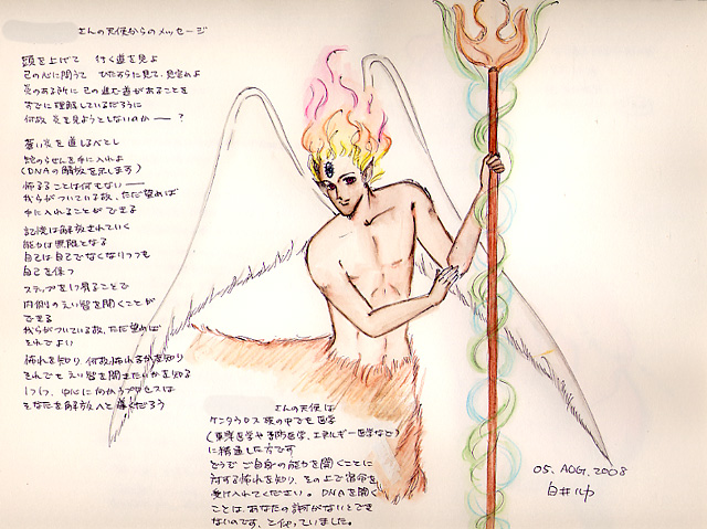 ☆Mさんの天使からのメッセージ ←前のイラスト 次のイラスト→ ![]() 【クリックしてイラストイメージを拡大】 ---Mさんへのチャネリングメッセージ--- 頭を上げて 行く道を見よ 己の心に問うて ひたすらに見て、見定めよ 炎のある所に己の進む道があることを すでに理解しているだろうに 何故炎を見ようとしないのか−−−−−? 蒼い炎を道しるべとし 蛇のらせんを手に入れよ (DNAの解放を示します) 怖るることは何もない−−− 我らがついている故、ただ望めば 手に入れることができる 記憶は解放されていく 能力は無限となる 自己は自己でなくなりつつも 自己を保つ ステップを一つ昇ることで 内側の叡智を開くことができる 我らがついている故、ただ望めばそれでよい 怖れを知り、何故怖れるかを知り それでも叡智を開きたいかを知る 一つ一つ、中心に向かうプロセスは そなたを解放へと導くだろう ### Mさんの天使はケンタウロス族の中でも医学(東洋医学や予防医学、エネルギー医学など)に精通した方です。 どうぞご自身の能力を開くことに対する怖れを知り、その上で宿命を受け入れてください。 DNAを開くことはあなたの許可がないとできないのです、と仰っていました。 ---Mさんからいただいた感想--- この時期に頂いたメッセージ。何かとても意味があるように感じました。秋から色んな意味で…生活パターンも自分自身も方向転換期に来ている、この時に必要なメッセージだと感じました。 今年の1月から、まさに東洋医学を混ぜながら…エネルギー・波動を使い治療などを、勉強、実践している所でしたので…ケンタウロス族の天使さんには驚きと納得の気持ちになりました。 DNAの解放にも、ケンタウロス族の方々が付いて居てくれると知り、安心しました。 今まで自分が、やって来ていた事と、東洋医学エネルギー医学のケンタウロス族の天使さんが付いて居てくれると思うと嬉しさと親しみを感じました。 ますます、楽しみになりました 子育てしながらの、忙しい毎日…チャネリングして頂きありがとうございましたm(__)m 世界にたった一つしかない、守護天使からあなたのためだけに贈られるスピリチュアル・ギフトのお申込は、今すぐこちらからどうぞ♪ ←前のイラスト 次のイラスト→ |